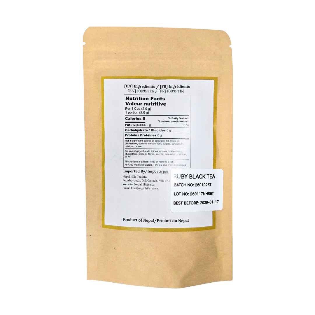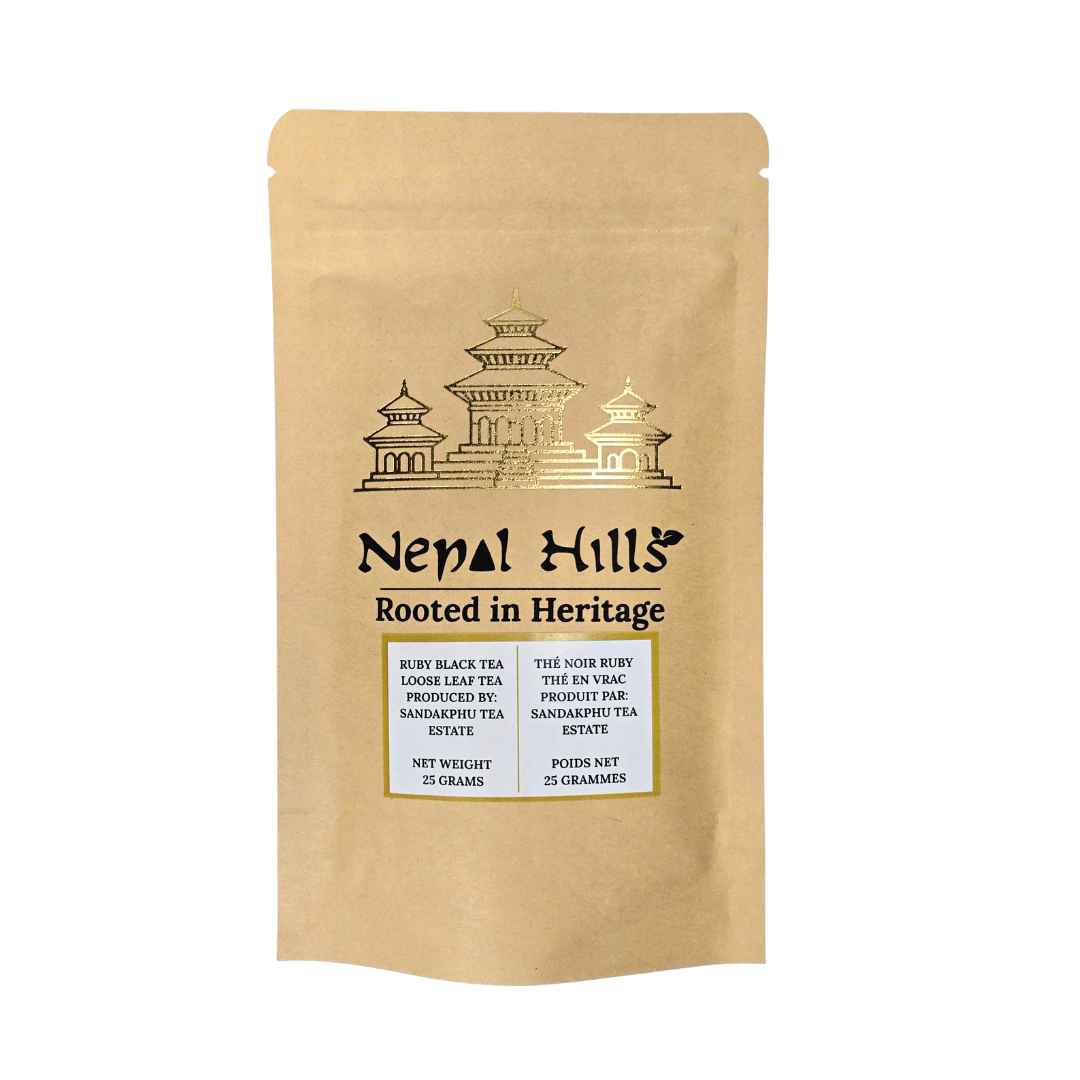 Ruby was born at Sandakphu tea estate, where cool mountain mists roll through the high hills and enrich every tender leaf. Artisans there follow unique methods to bring out the true character of Nepali black tea — deep, smooth, and alive with aroma.