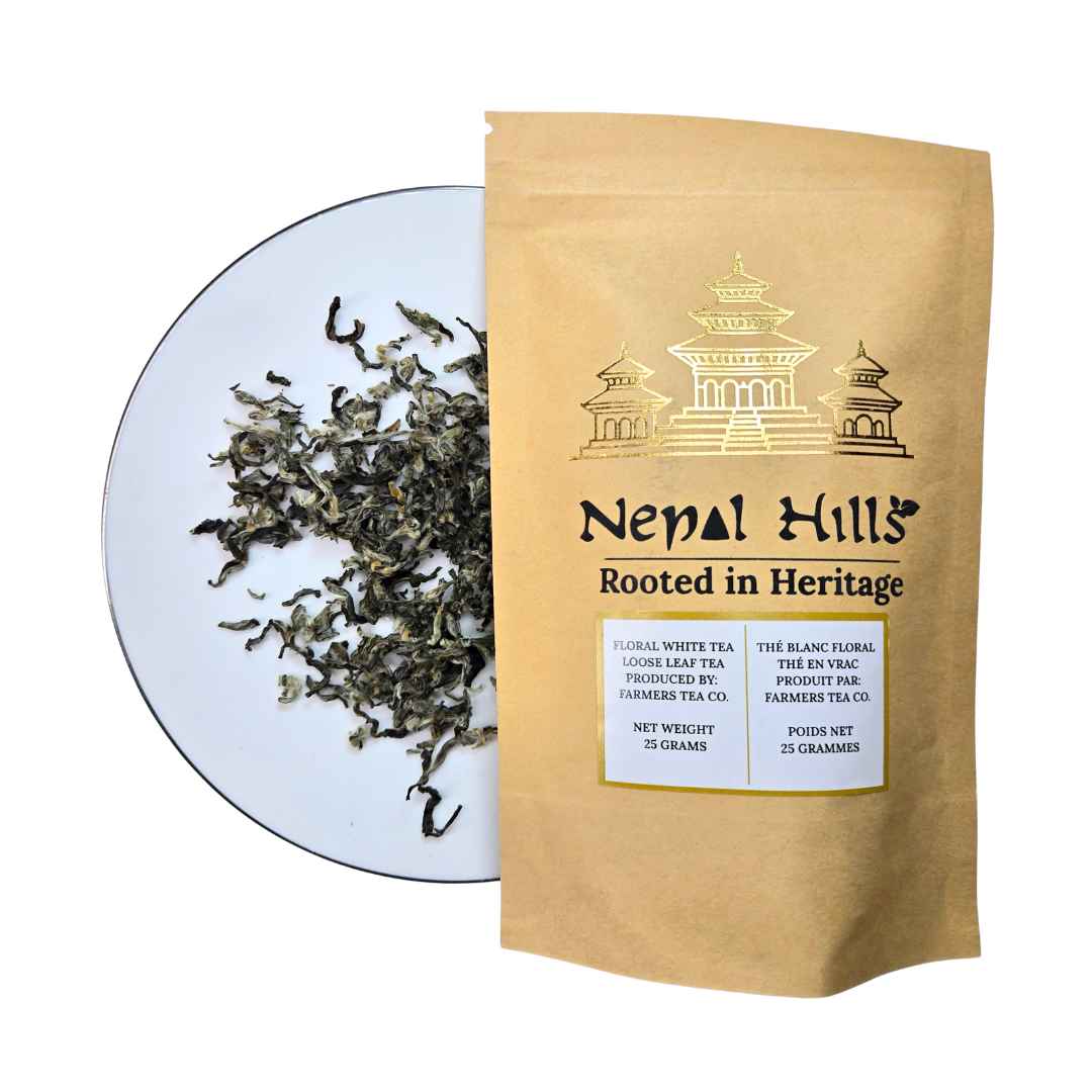 This tea comes from Malate, Ilam, where the morning air is cool, quiet, and misty, rolling off the Himalayan foothills. The artisan Dil Kumar at Farmers Tea Co. has spent thousands of hours perfecting the art of white tea, processing only the most tender young buds. The result is a tea that tastes like the moment it was harvested—fresh, bright, and full of life.